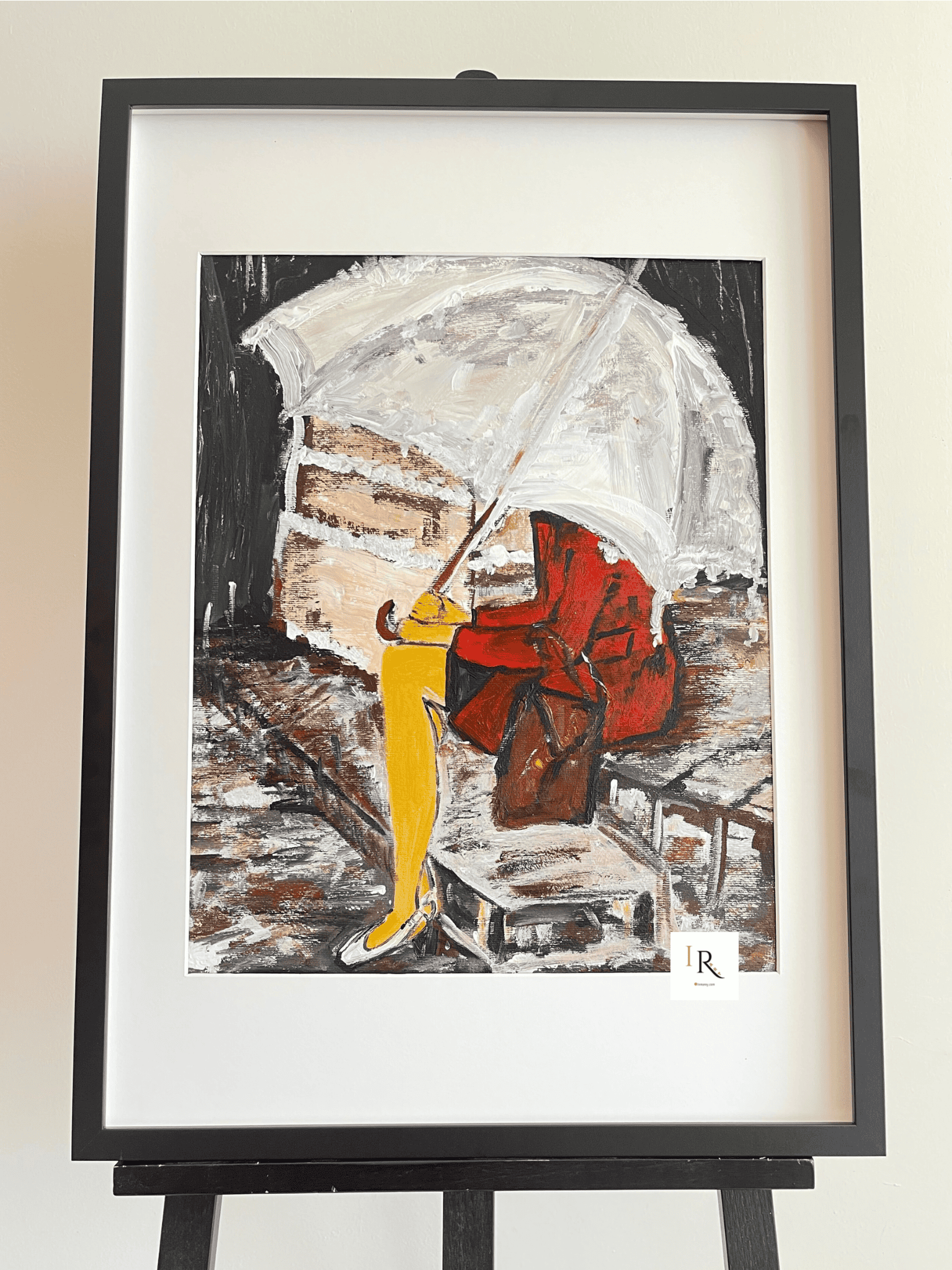 Descripción: «Mujer con Paraguas» es una pintura acrílica que captura la elegancia y el misterio de una mujer bajo la lluvia. Con una paleta de colores melancólicos y un enfoque en los detalles, esta obra transmite una sensación de serenidad y reflexión. Ideal para agregar un toque de sofisticación y emotividad a cualquier espacio, este cuadro es perfecto para salones, dormitorios o cualquier rincón que necesite un toque artístico y poético.